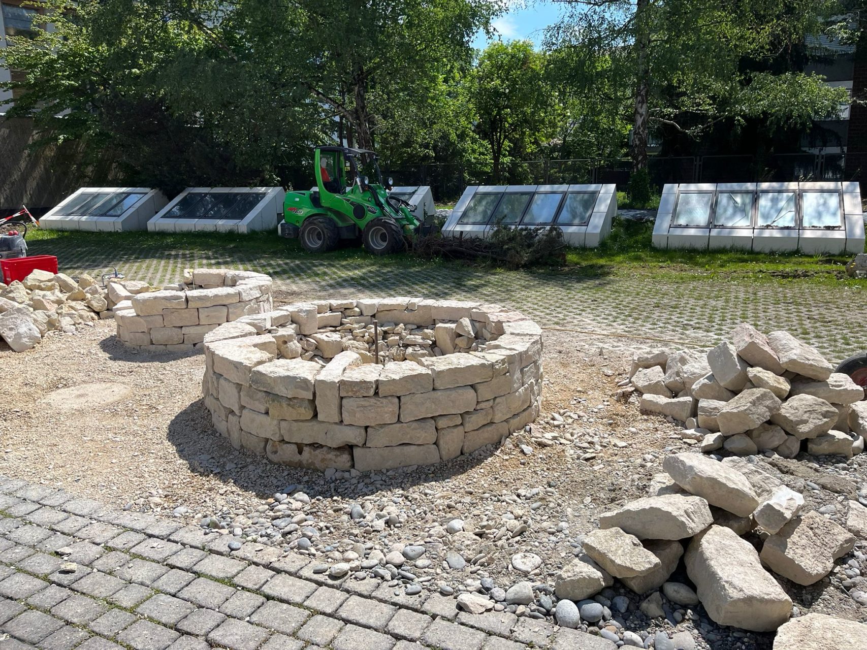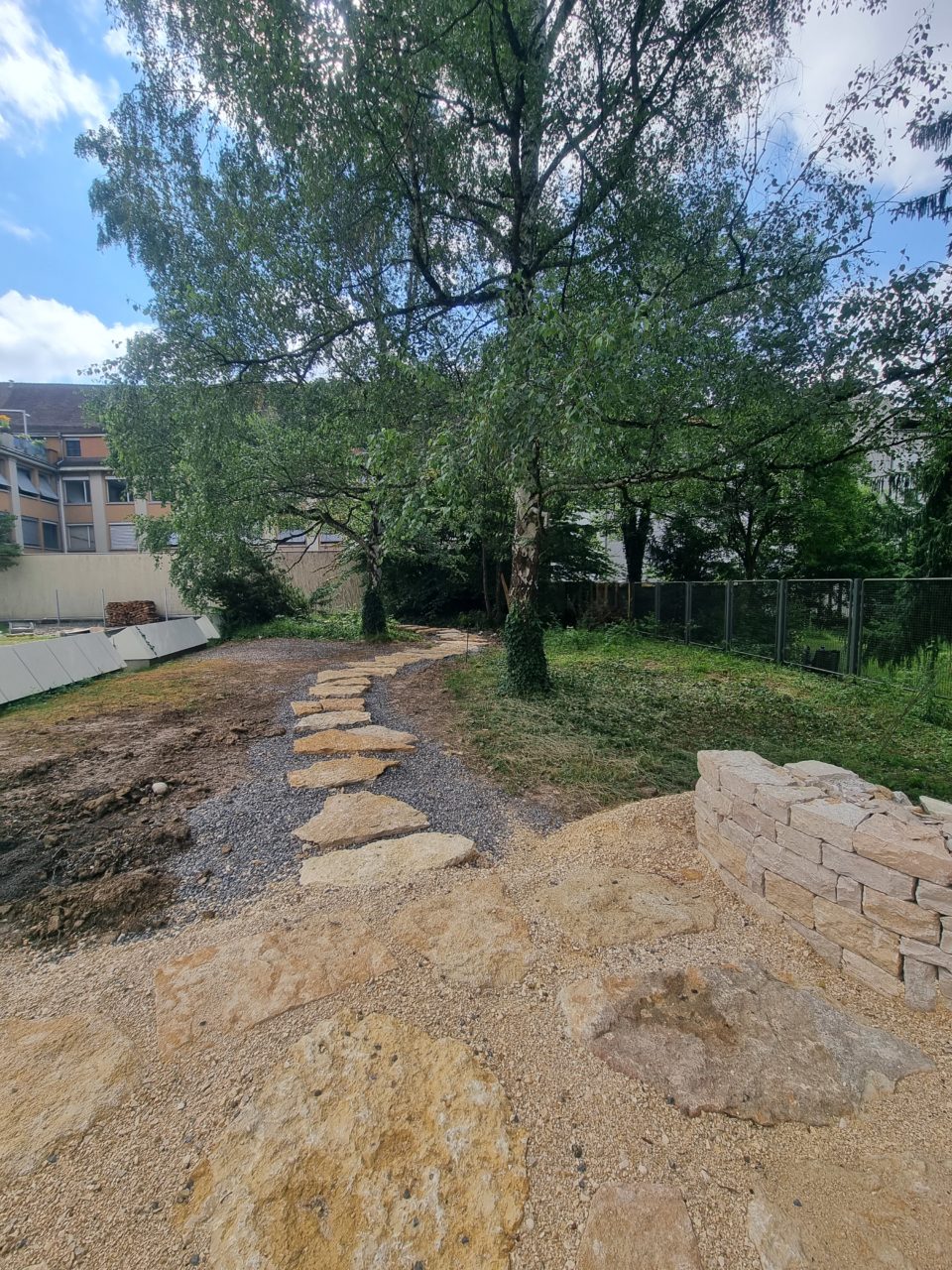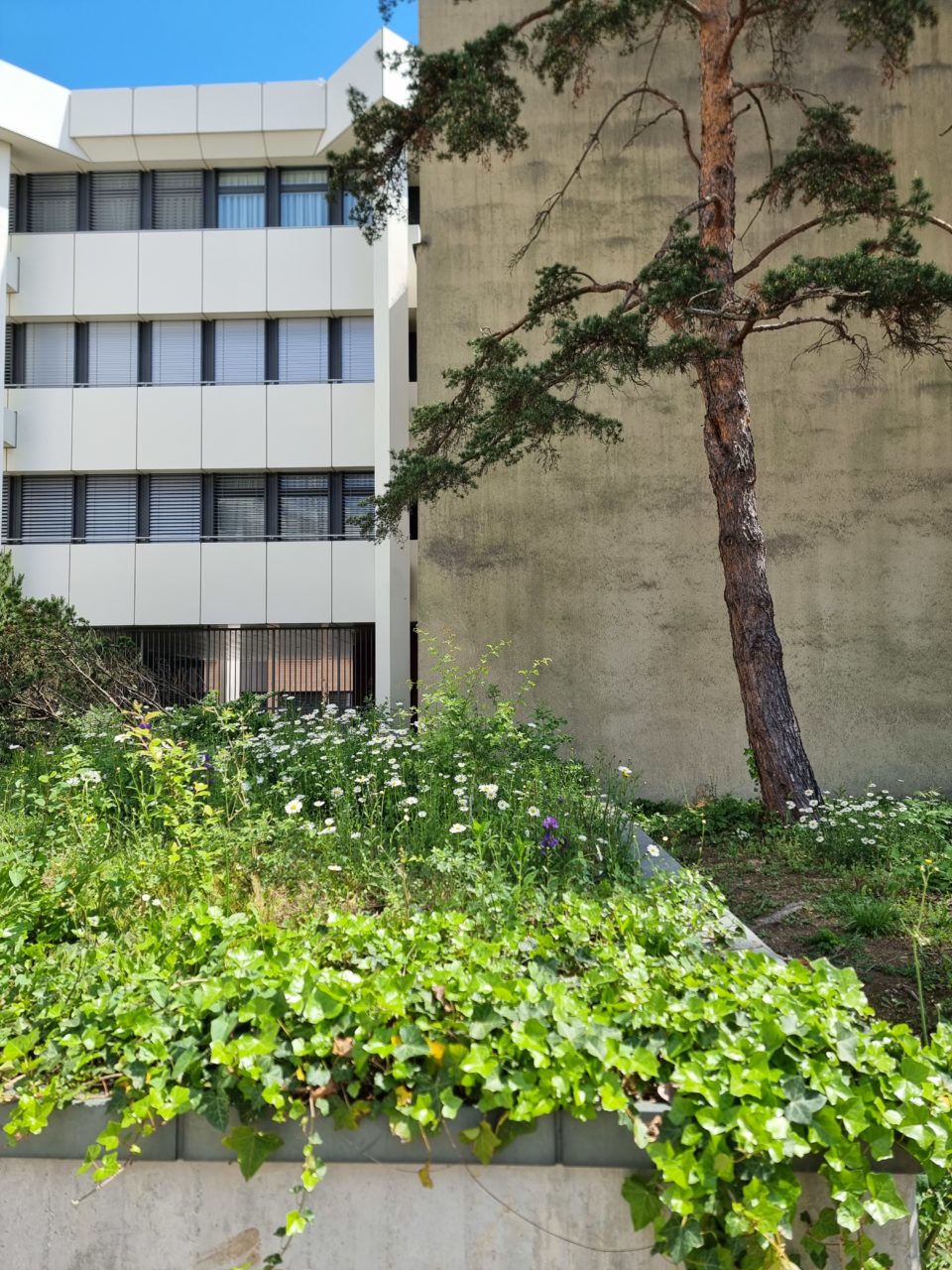 Während der Neugestaltung wurden vielfältige, naturnahe Strukturen geschaffen. Dazu zählen einheimische Staudenrabatten, Sträucher und Kräuterbeete, die für die Anwohnenden nutzbar sind. Zusätzlich wurden Kleinstrukturen wie Trockensteinmauern, Totholzhaufen und Sandlinsen integriert, um Wildbienen und anderen Insekten Lebensraum zu bieten. Auch künstliche Nistkästen für Fledermäuse und Vögel wurden angebracht, um die Artenvielfalt zusätzlich zu fördern. Mit den neugestalteten Grünflächen entstanden vielfältige Lebensräume, die nicht nur die Aufenthaltsqualität im Innenhof erhöhen, sondern auch das Stadtklima verbessern und die Biodiversität stärken.