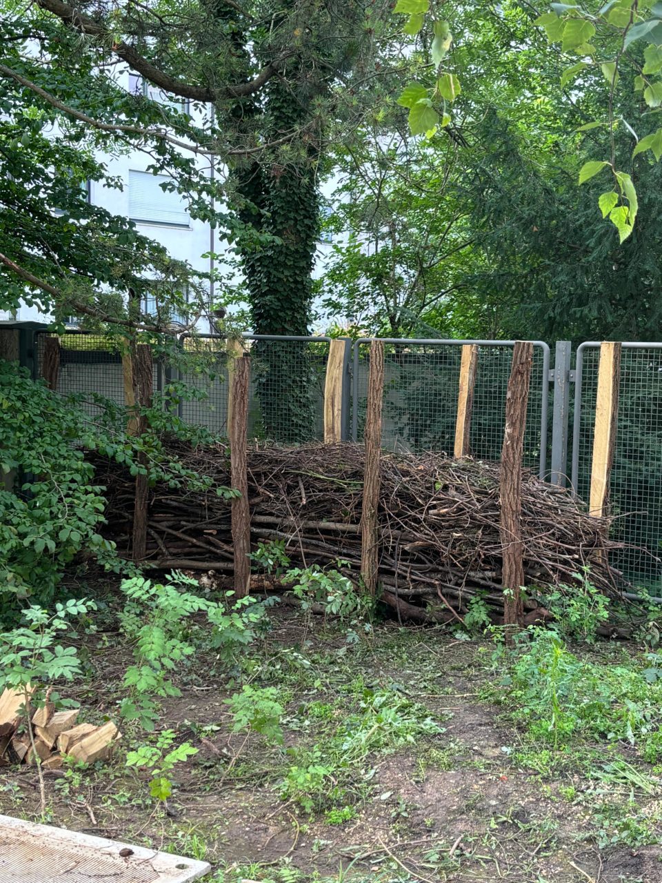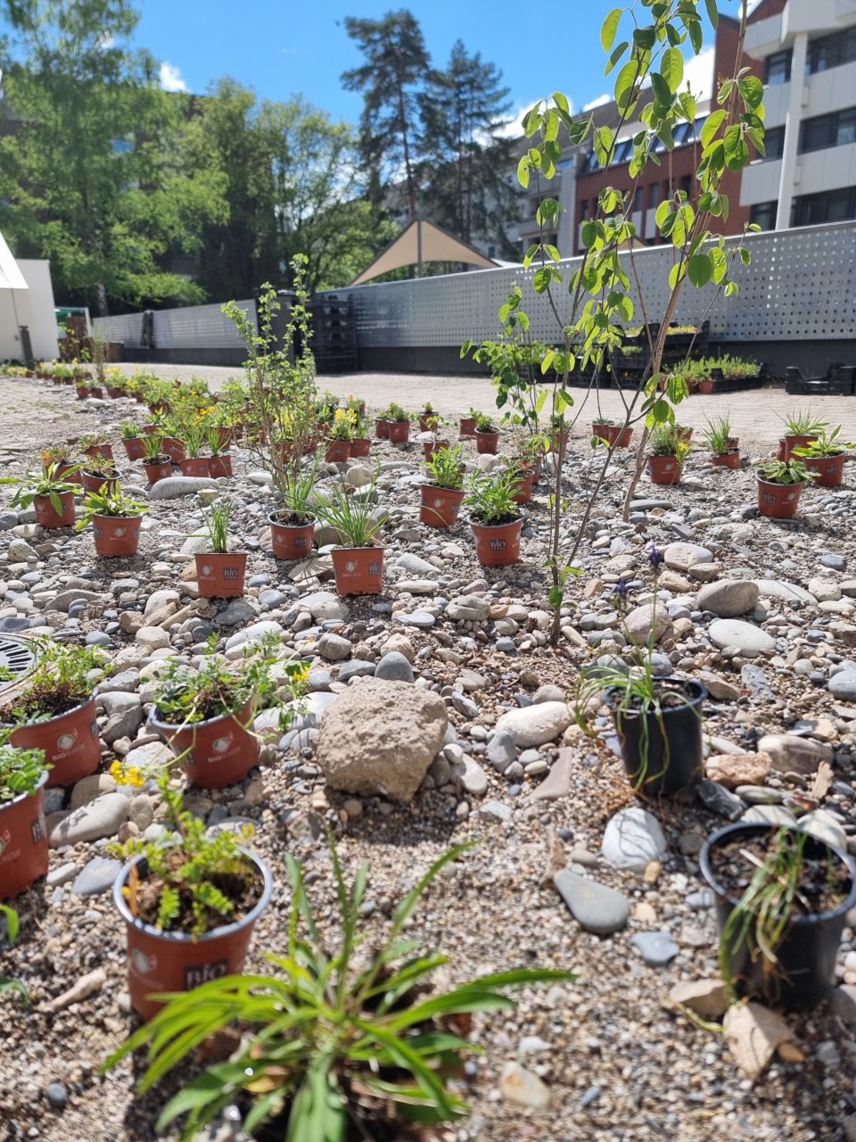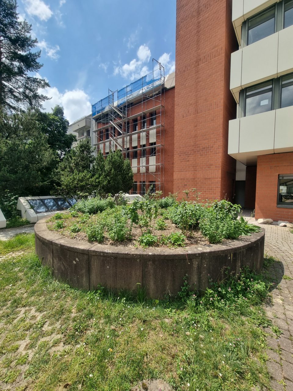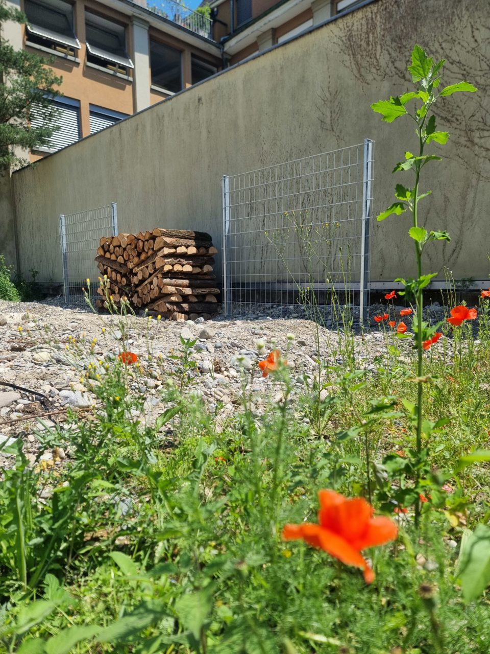 Während der Neugestaltung wurden vielfältige, naturnahe Strukturen geschaffen. Dazu zählen einheimische Staudenrabatten, Sträucher und Kräuterbeete, die für die Anwohnenden nutzbar sind. Zusätzlich wurden Kleinstrukturen wie Trockensteinmauern, Totholzhaufen und Sandlinsen integriert, um Wildbienen und anderen Insekten Lebensraum zu bieten. Auch künstliche Nistkästen für Fledermäuse und Vögel wurden angebracht, um die Artenvielfalt zusätzlich zu fördern. Mit den neugestalteten Grünflächen entstanden vielfältige Lebensräume, die nicht nur die Aufenthaltsqualität im Innenhof erhöhen, sondern auch das Stadtklima verbessern und die Biodiversität stärken.